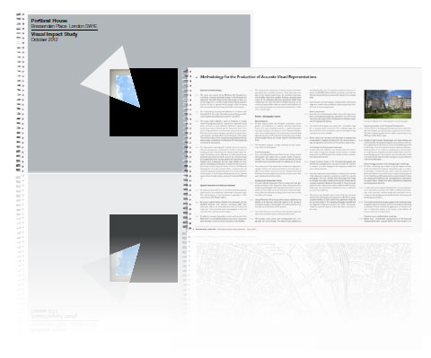 The culmination of our work leading up to the submission of a planning application is a formal assessment document that follows a clearly defined methodology and is created with the architects, planning and townscape consultants. These documents involve large volumes of high resolution digital images, maps, diagrams and text. Millerhare has developed sophisticated database-driven assembly techniques that ensure that all information is consistent and accurately presented. Working with specialist printers we achieve a timely delivery of the highest quality final printed reports accompanied by supporting digital media.